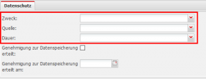 Sie können bei jedem FW-Mitglied und jeder Adresse hinterlegen, für welchen Zweck die Daten erhoben wurden, aus welcher Quelle die Daten stammen und wie lange Sie diese Daten speichern.
