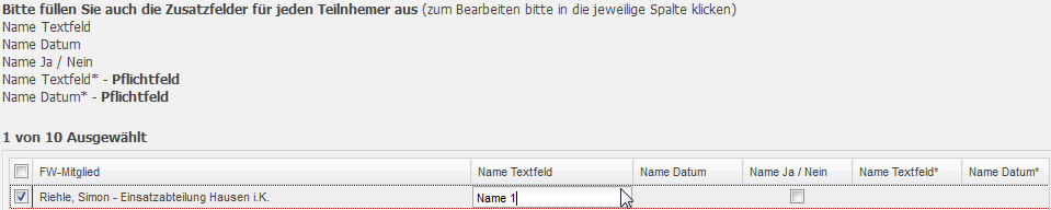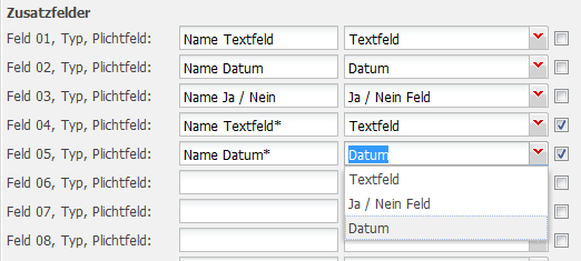 Diese Felder erscheinen später beim Anmelden der Teilnehmer. Mit Hilfe dieser Felder können dann zusätzliche Informationen abgefragt werden.