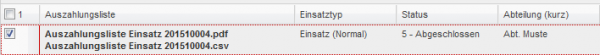 Um eine Auszahlungsliste zu erzeugen müssen Sie alle Einsätze die Sie in einer Liste haben möchten auswählen.