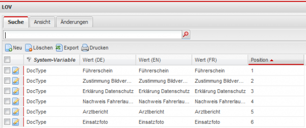 sollten Sie noch weiter Dokumenten Typen benötigen, können Sie diese im Menüpunkt Stammdaten → Generelle Stammdaten → Generelle Stammdaten anlegen. Die Systemvariable für die Dokumente Typen heißt DocType