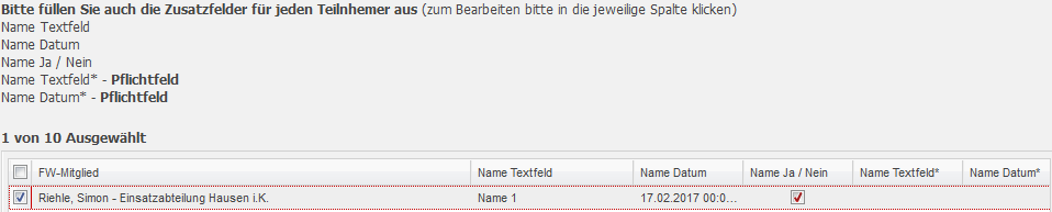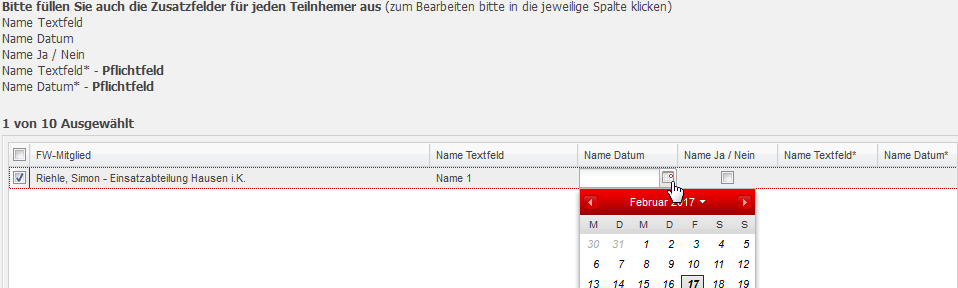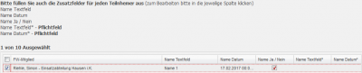 Diese Felder erscheinen später beim Anmelden der Teilnehmer. Mit Hilfe dieser Felder können dann zusätzliche Informationen abgefragt werden.