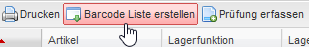 Barcodes können über die Werkzeugleiste mit „Barcode Liste erstellen“ in den dafür vorgesehenen Ansichten erzeugt werden.