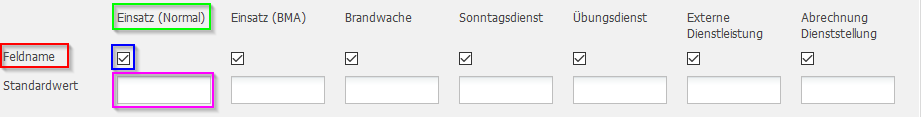 Wenn man möchte das das Feld Einsatznummer Feuerwehr automatisch gesetzt wird kann man im Feld Standardwert den Wert auto eintragen. Wenn der Wert auto gesetzt ist wird automatisch die nächste freie Nummer beim Erstellen des Einsatzes gesetzt.