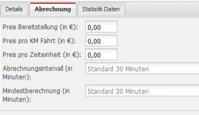 Hier kann definiert werden in welchen Zeitabschnitten ein Fahrzeug verrechnet wird. Sie können das Fahrzeug z.B. minutengenau abrechnen, dann tragen Sie eine 1 ein. Oder Sie können das Fahrzeug z.B. auch pro angefangene 30 Minuten abrechnen, dann tragen Sie 30 ein.